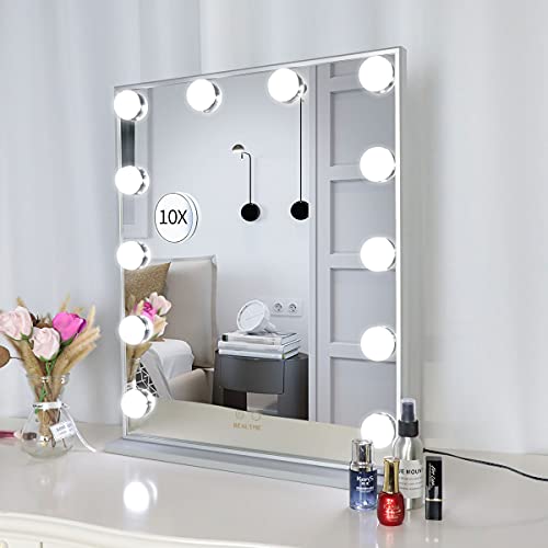 WONSTART Vanity Mirror with Lights, Hollywood Lighted Makeup Mirror with 10X Magnification, Tabletop or Wall Mounted LED Mirror